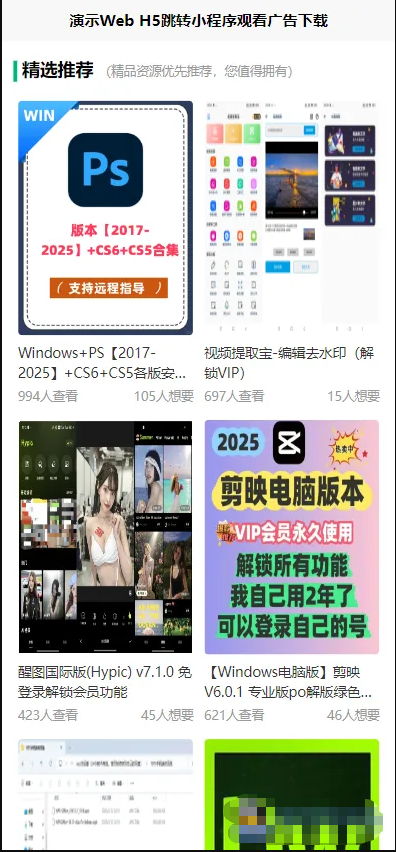 实现流量变现赚取广告收益Web H5跳转小程序观看激励广告后下载